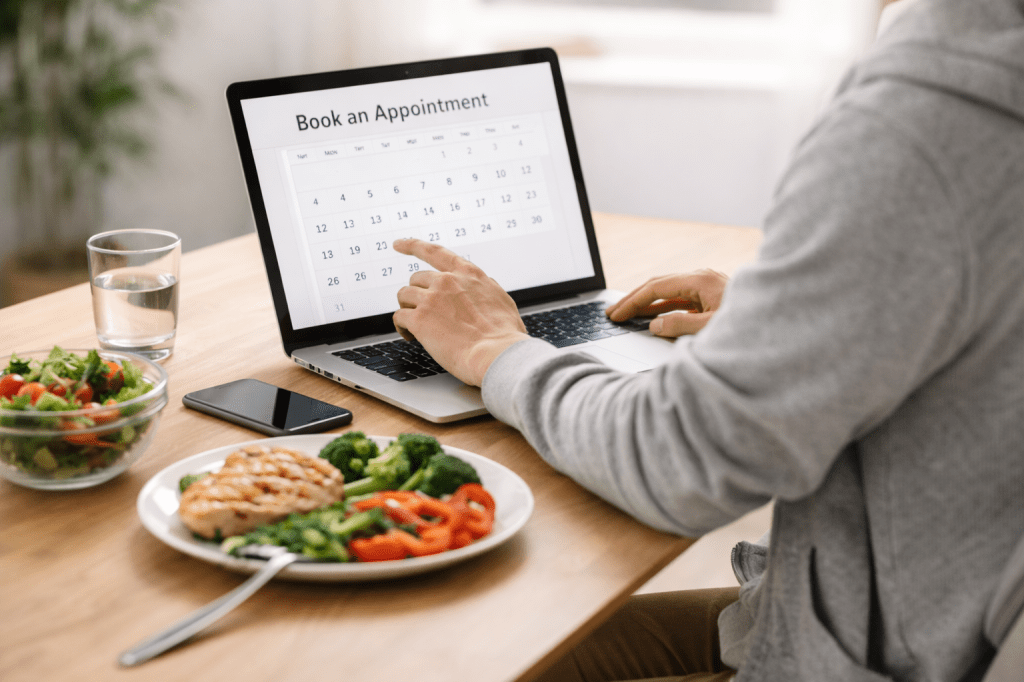 Your first appointment, typically 60–90 minutes. This session includes a detailed review of your health history, lifestyle, and nutrition goals. We’ll build a personalized plan that feels realistic and sustainable for you.